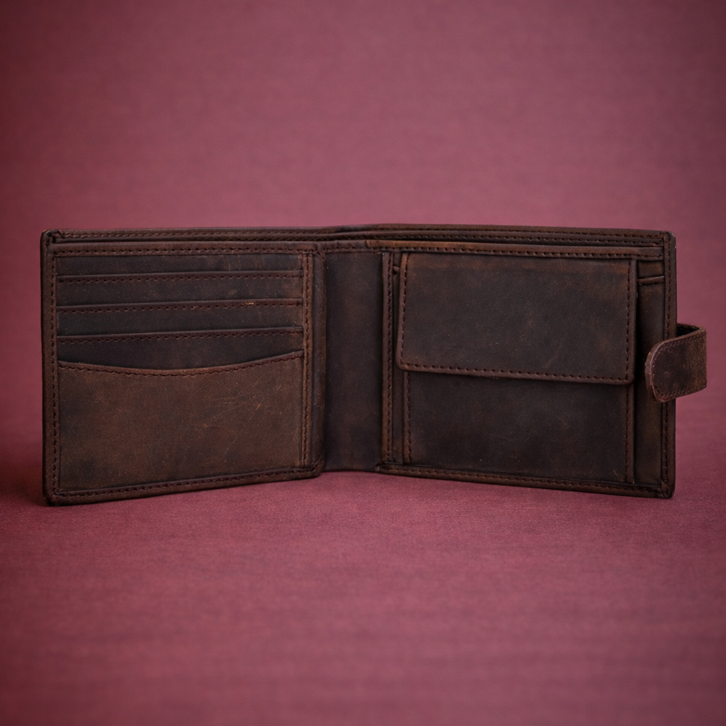 Durch präzise Handwerkskunst und robuste Nähte bleibt er auch im täglichen Gebrauch zuverlässig und langlebig. Mehrere Kartenfächer und ein Münzfach sorgen für Sicherheit und Ordnung ohne Kompromisse.